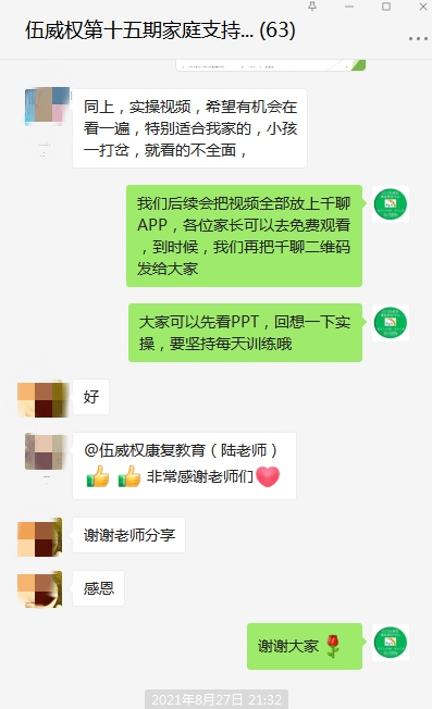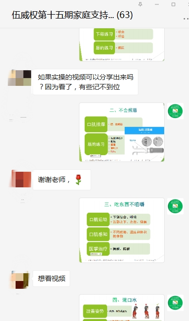 2021年8月27日晚,伍威权康复教育中心举办第十五期家庭支持性服务培训,本期家长培训通过微信平台直播的方式,带领家长一起学习语言口肌实操。